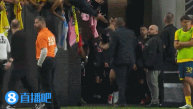 梅西中场休息过后进场时与球迷们击掌,给球迷签名